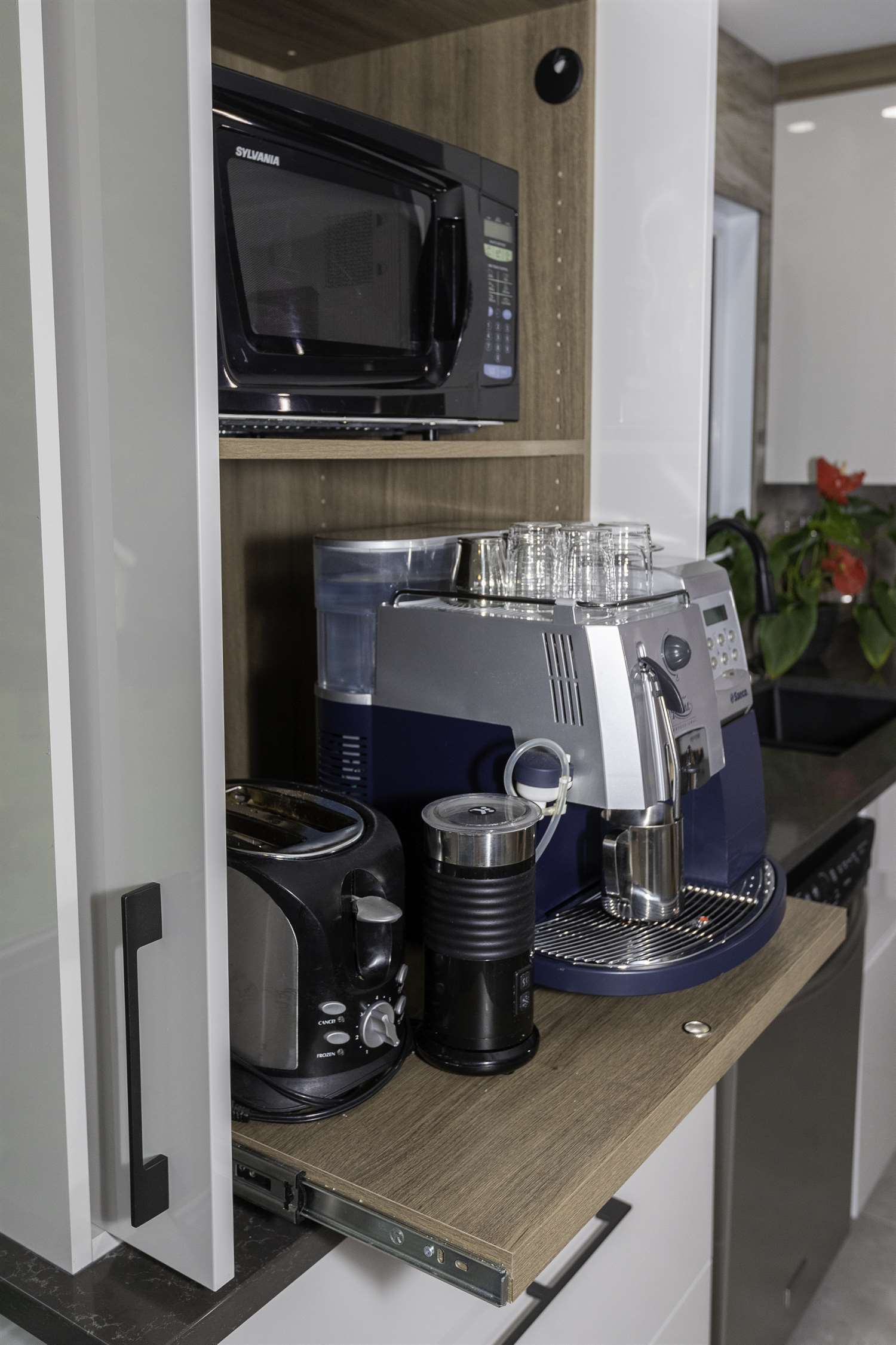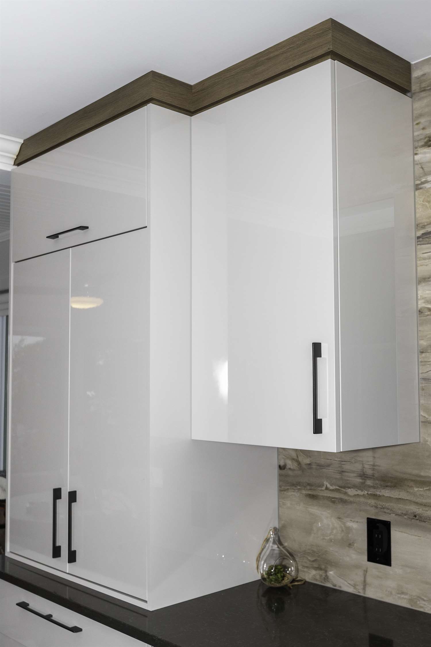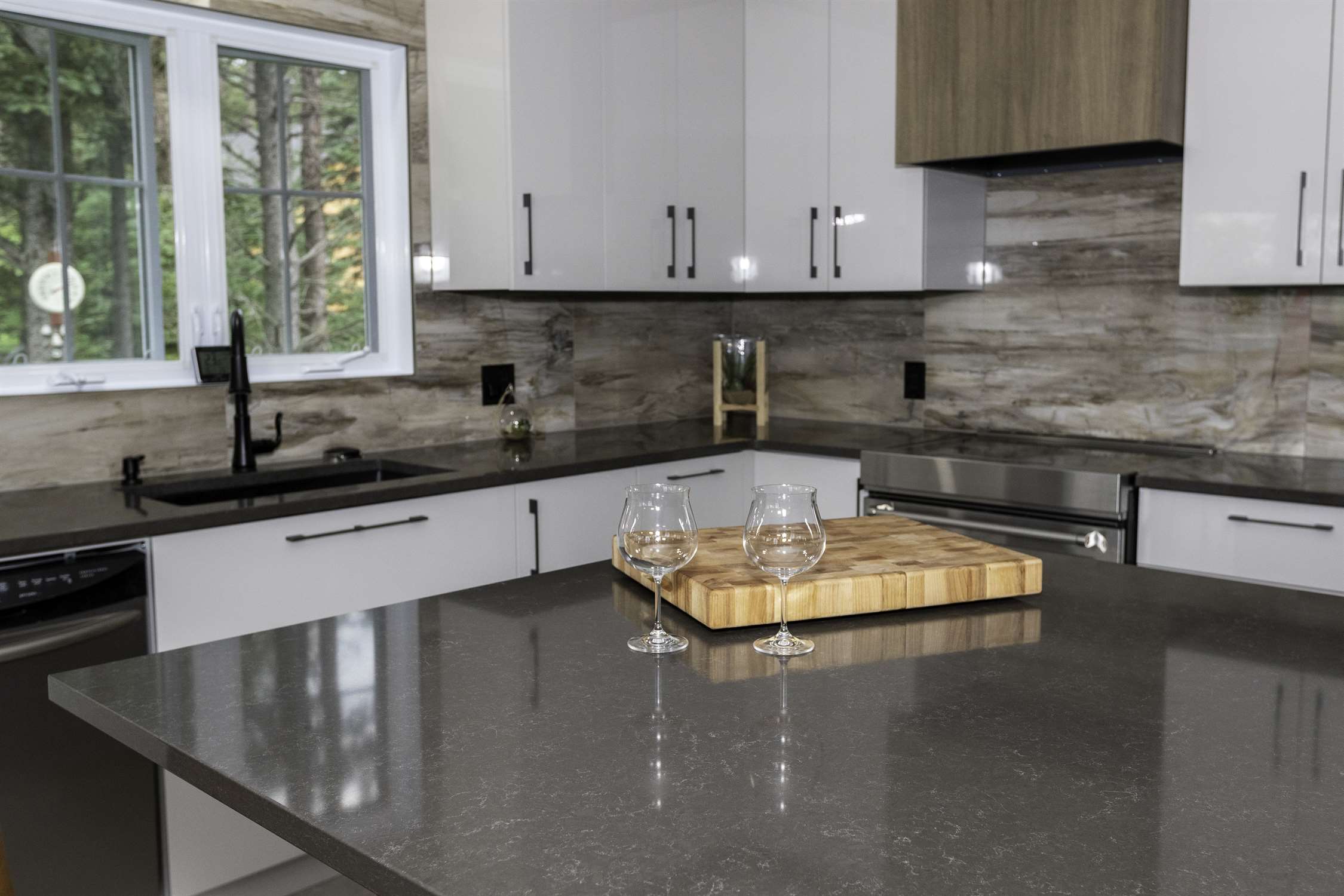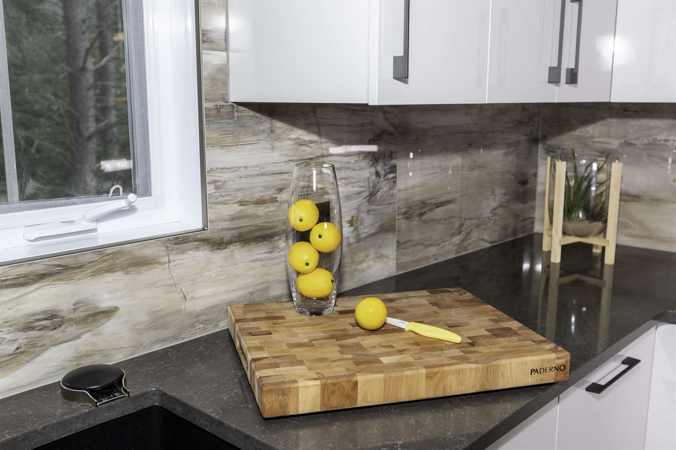 Cette nouvelle cuisine a été entièrement réorganisée pour optimiser l’espace et offrir un décor raffiné. Notre équipe a installé un dosseret au format 24×48, des armoires sur mesure et un comptoir de quartz, en plus d’intégrer une hotte Vent A Hood. Tous les matériaux ont été soigneusement sélectionnés dans notre boutique et l’installation complète des armoires et de la céramique a été réalisée par notre équipe.