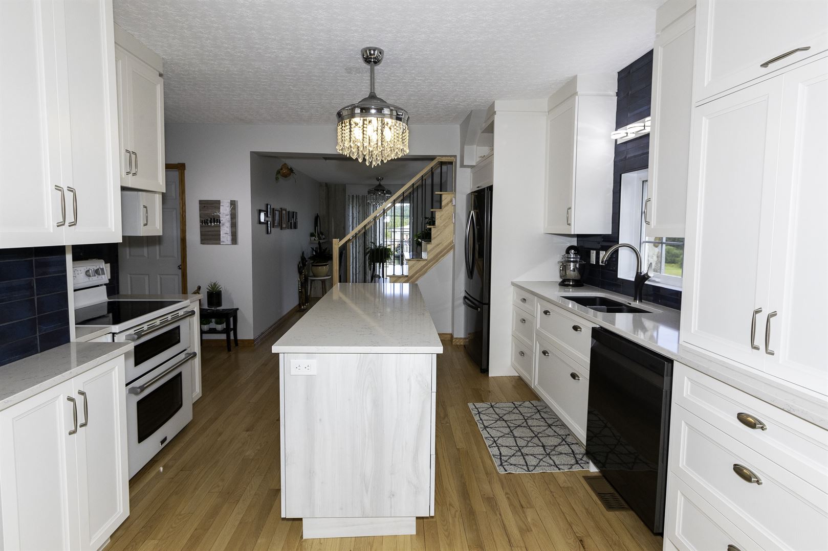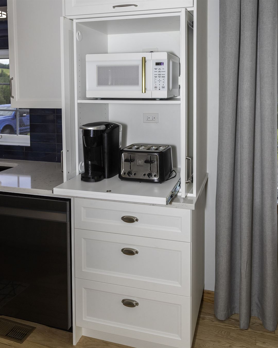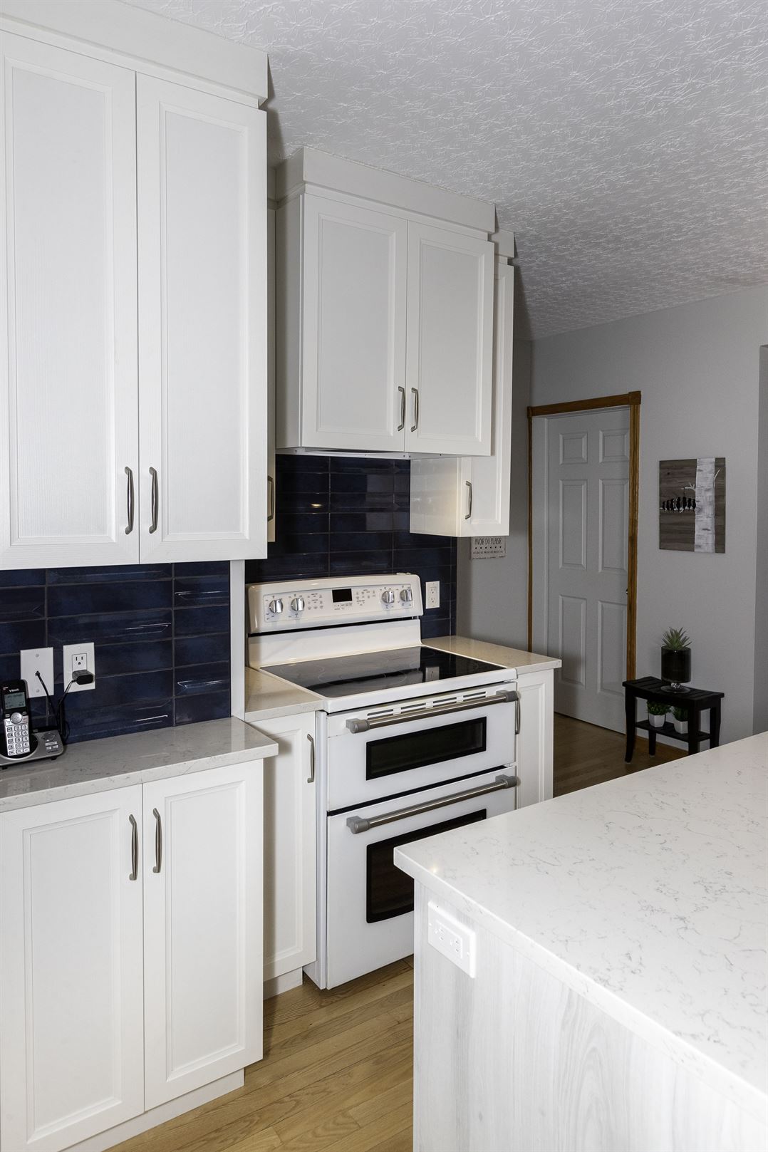 Dans ce projet, nous avons transformé la cuisine tout en respectant l’âme de la maison existante. Les armoires originales en bois ont été remplacées par des modèles élégants, complétés par une hotte au charbon Vent A Hood et un dosseret de cuisine spectaculaire.