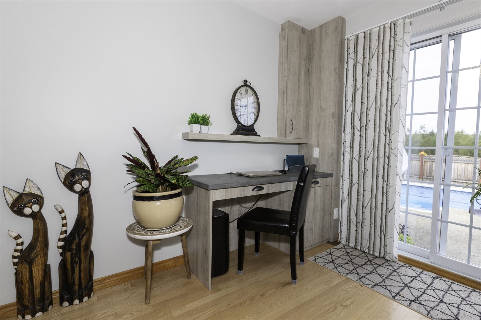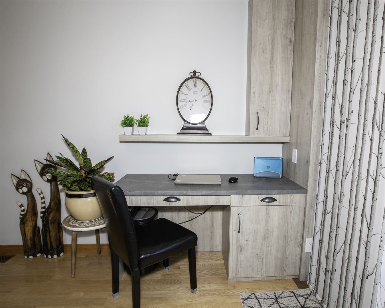Un bureau de travail avec rideaux sur mesure a été ajouté, et l’agencement complet a été pensé avec des produits sélectionnés dans notre boutique.